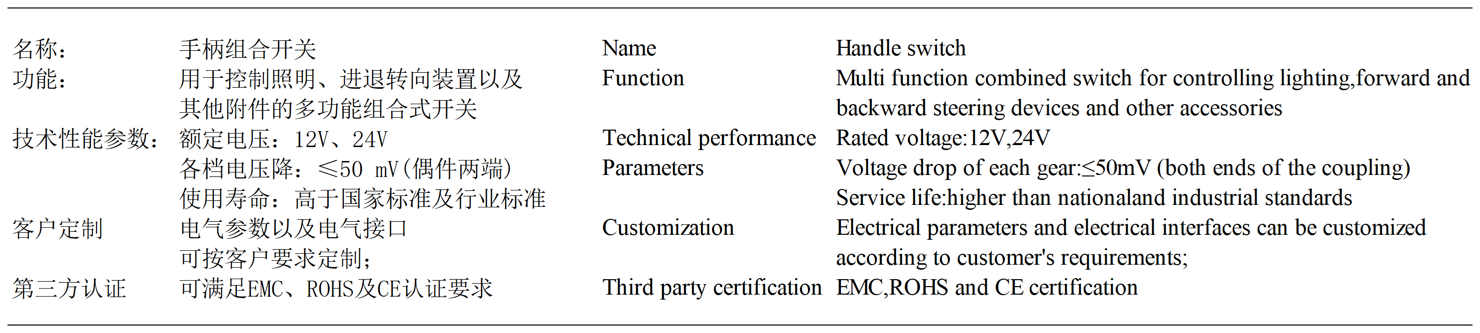 內(nèi)燃雙柄組合開關(guān)
